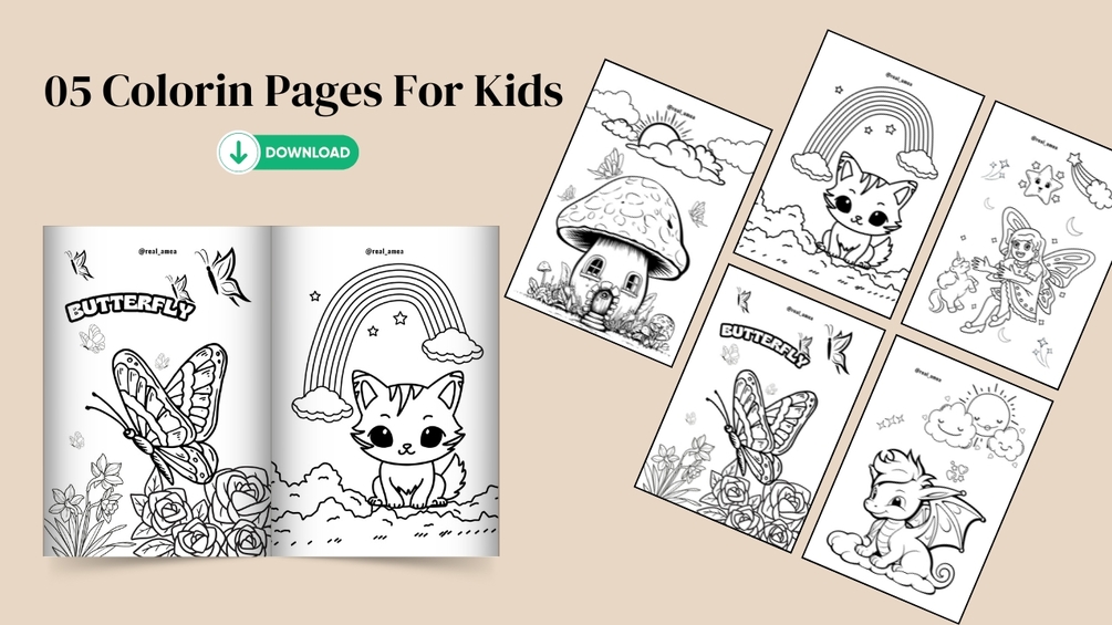 Keep your little ones entertained with this delightful set of 5 printable coloring pages!